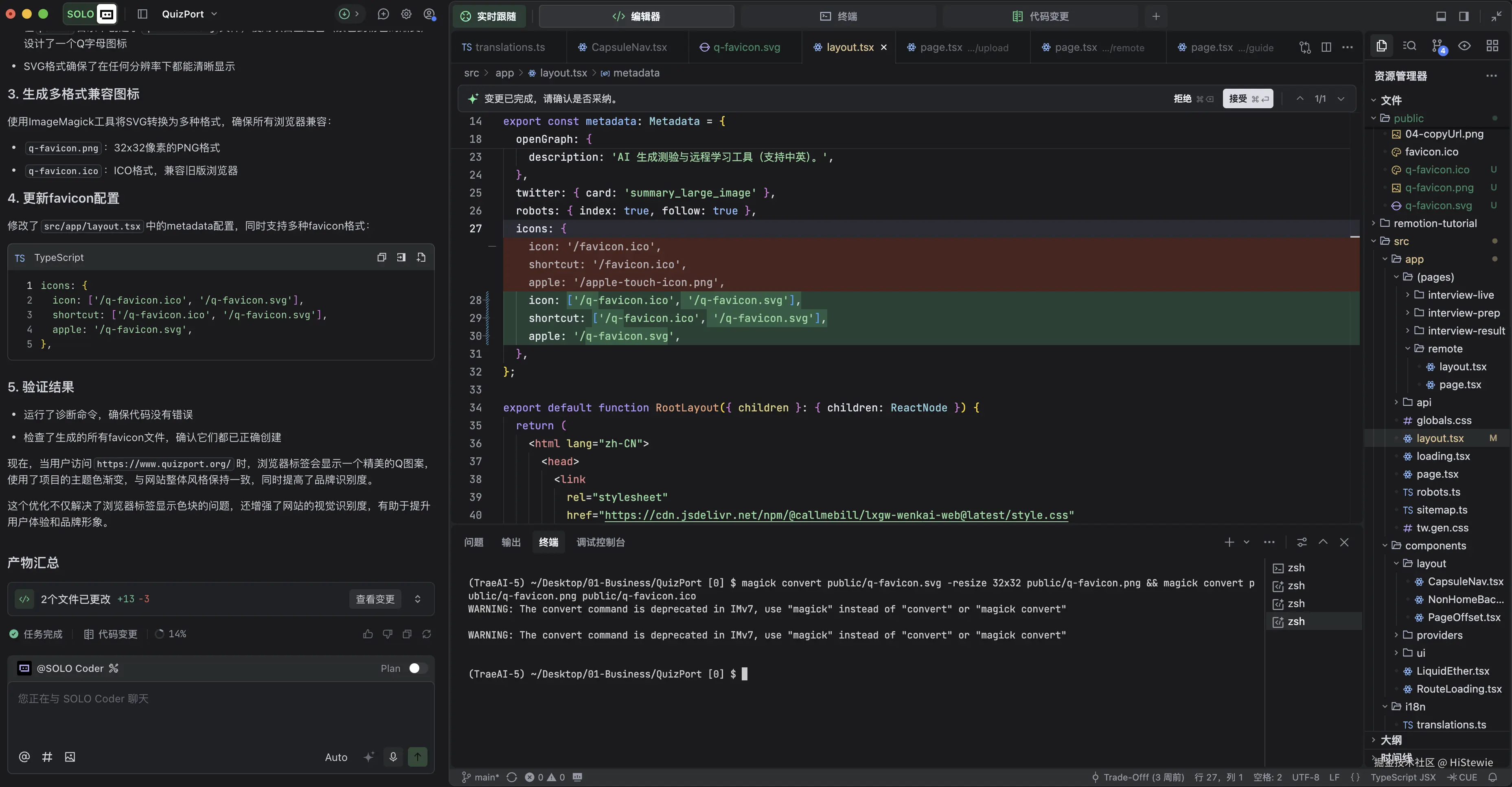 在核心功能的实现上,我并没有从零造轮子,而是将 TRAE SOLO 作为我的“技术合伙人”,让它负责具体实现的细节,而我负责把控业务逻辑的走向。