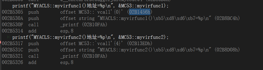 3			printf("myvirfunc()被调用,this = %p\n", this);