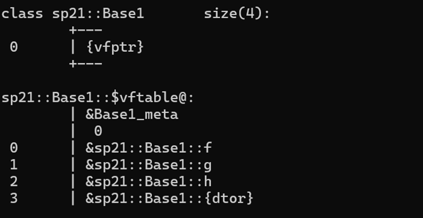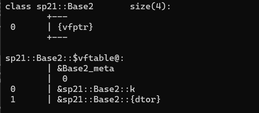 它代表一段要执行的代码的地址,这段代码引导咱们去执行正确的虚函数。可以把vcall看成是虚函数表,vcall{0} 表示虚表中的第一个虚函数,vcall{4}表示虚表中的第二个虚函数。