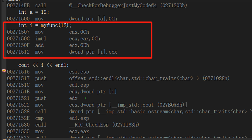 为了验证局部变量对程序的影响,现在修改inline函数,定义一个局部变量,然后返回局部变量,如下: