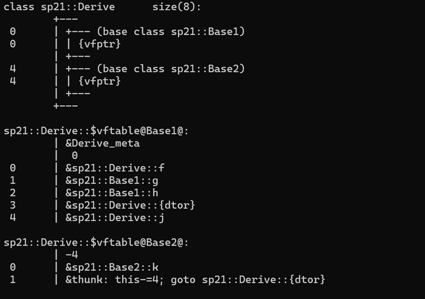 • 情况1:通过指向第2基类的指针,调用继承类的虚函数