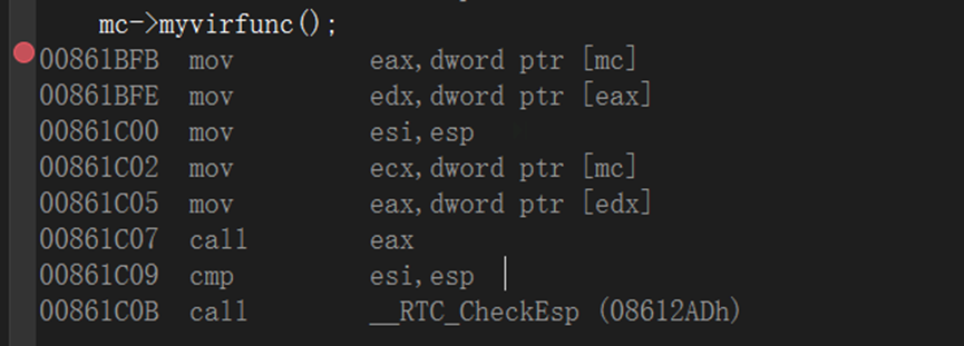 12			//myvirfunc2(); 居然走虚函数表指针调用