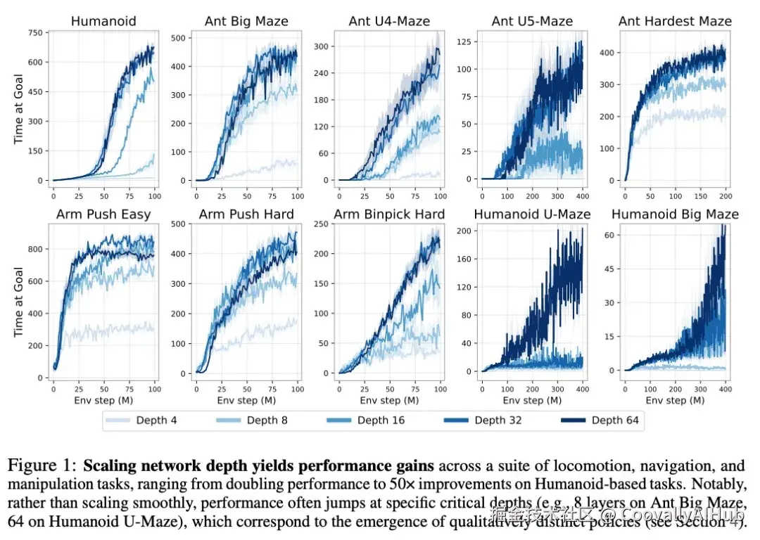 这项NeurIPS 2025最佳论文的研究打破了“强化学习难以从模型规模中受益”的传统观念,证明了深度scaling是自监督RL的强大催化剂。当大多数研究仍在小心翼翼地增加网络宽度时,这项工作勇敢地向深度维度探索,最终获得了丰厚的回报。