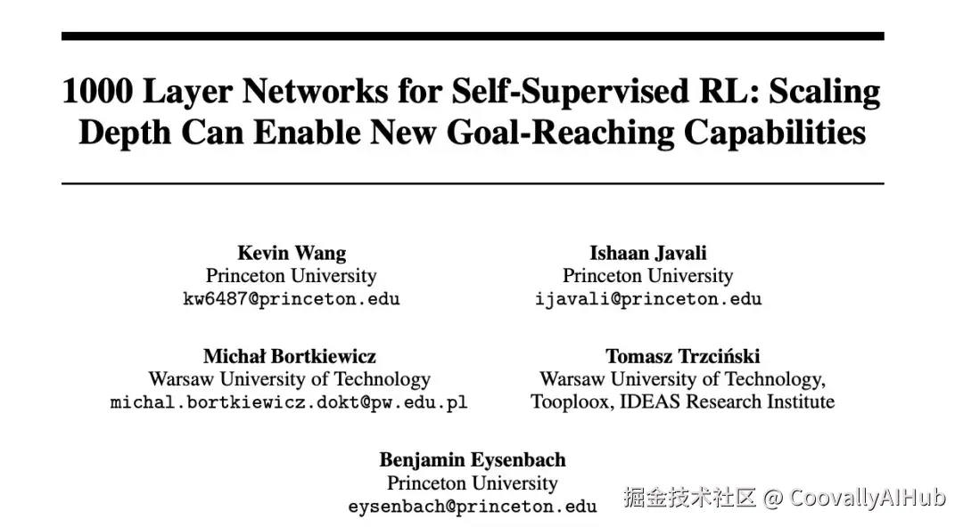NeurIPS 2025最佳论文奖由普林斯顿大学与OpenAI的合作研究,他们成功将RL网络深度扩展至1024层,在自监督强化学习任务上实现了性能2-50倍的提升。这项研究不仅证明了深度scaling对RL的有效性,还观察到了与模型规模相关的“突现现象”——当网络达到特定深度阈值时,智能体会突然学会全新的技能和行为模式。